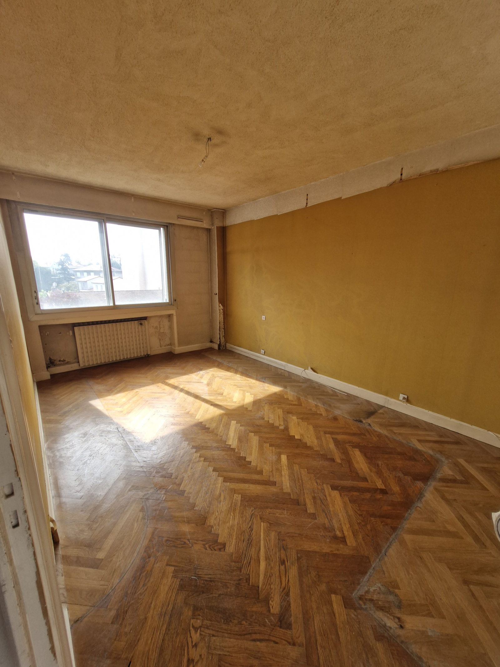 BRON PLEIN CENTRE, Appartement de 107 m² presenté par l'Agence AIPC2 en Exclusivité, séjour 25 m² avec parquet et accès sur balcon terrasse de 5 m² , grande cuisine 13 m² fermée avec cellier, 3 chambres de 13 m² avec parquet, sdb avec baignoire et wc + douche et meuble possibilité branchement machine à laver, wc indépendant, grand hall d'entrée, volets électriques, grande cave de 12 m² en sous/sol et garage aérien.