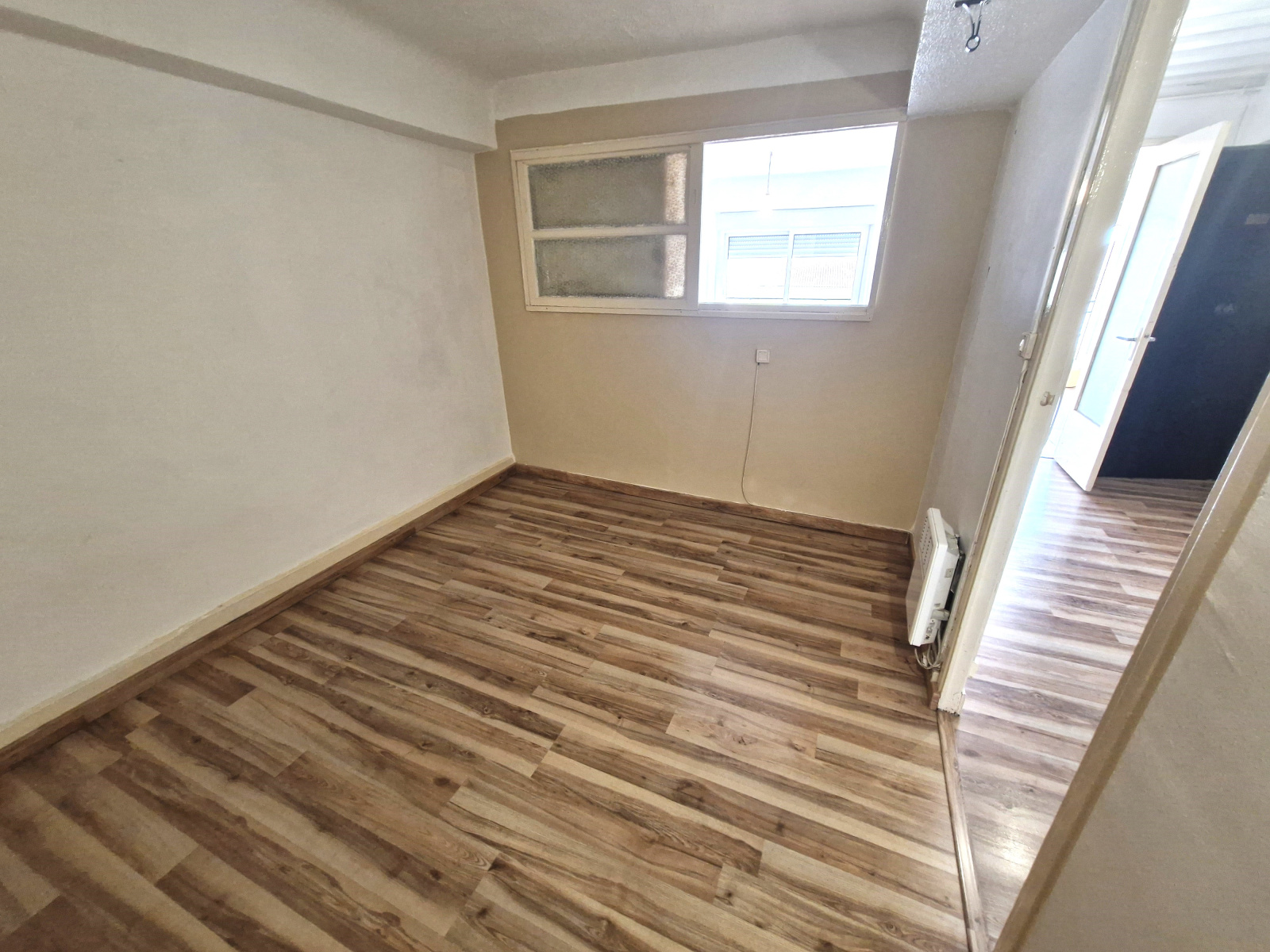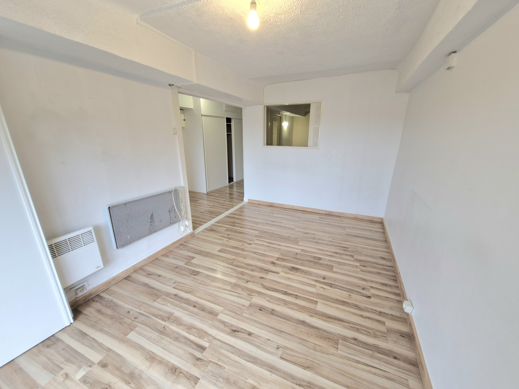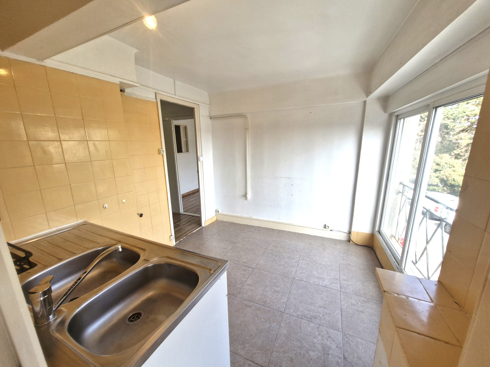 Fenetre en baie vitrée double vitrage alu avec volet roulant, possibilité de transformation intérieur pour faire cuisine séjour ouvert, 1 er étage, vue sur jardin, appartement très clair , libre de toute occupation , chauffage individuel électrique.