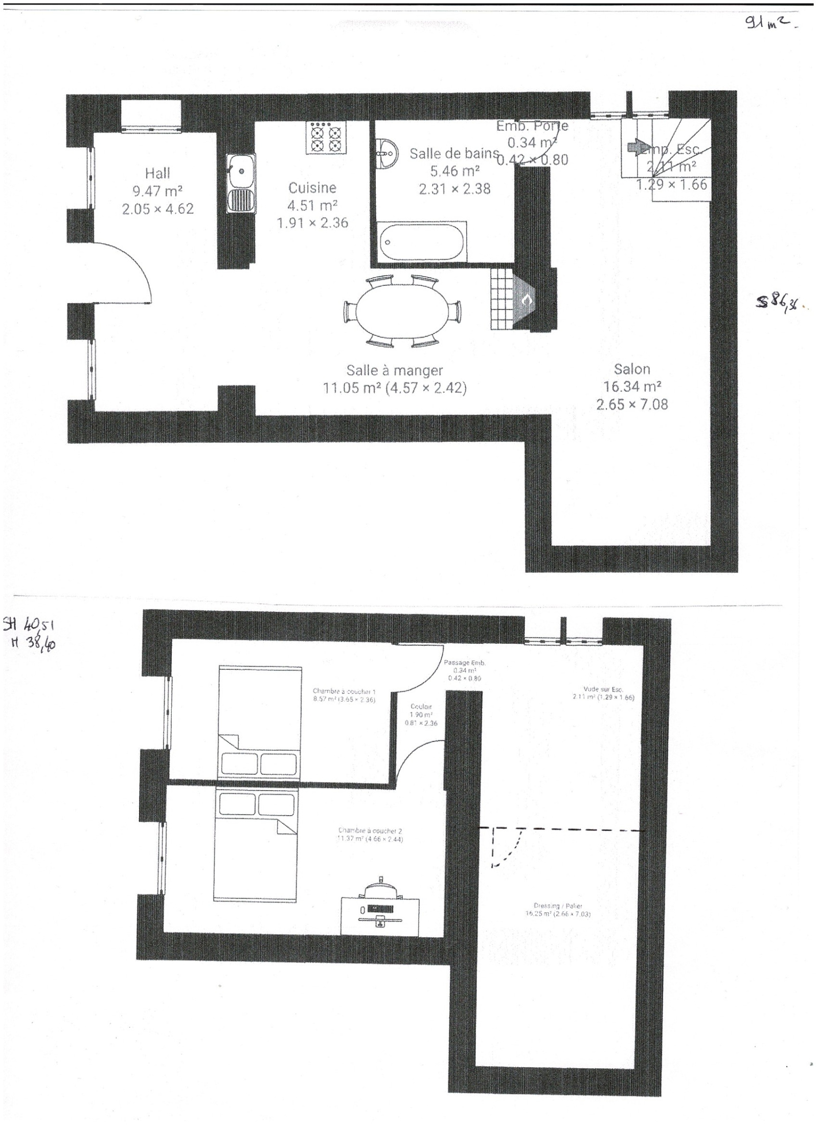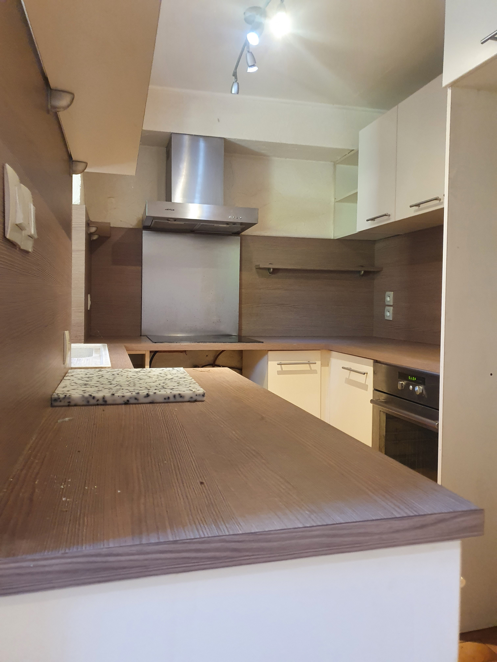 Au rdc : une cuisine meublée avec SAM + salon, hall d'entrée bureau avec rangements, sdb baignoire,